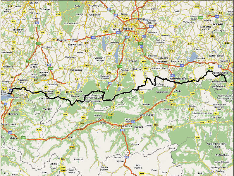Nochmal Alleintour. Wieder mit Zug nach Lindau und dann um 8 Uhr los. Wetter war diesmal nicht so besonders. Übernachtung in Matratzenlager beim "Jäger von Fall". War aber trotzdem super