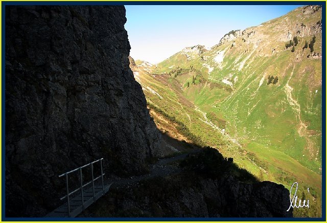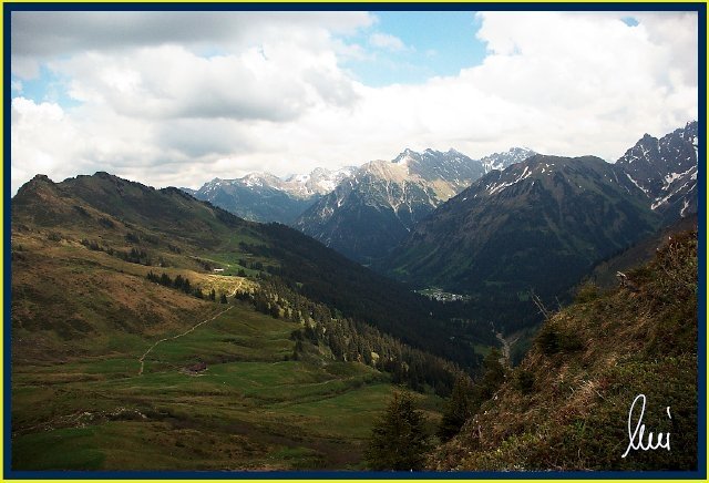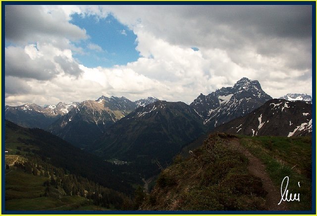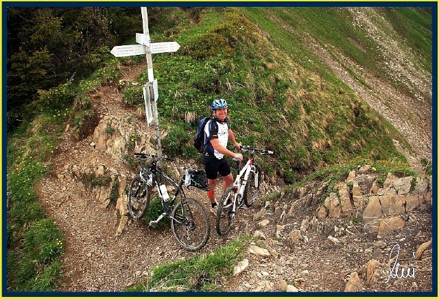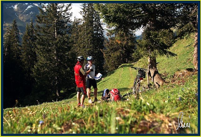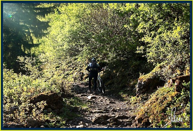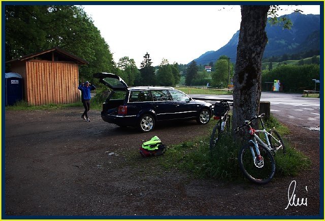 Als Test für den geplanten Alpencross hab ich mit Rainer eine "brutale" Tour über die oben angegebene Strecke gemacht. Wir wussten vorher nicht, dass grosse Teile der Strecke zumindest für mich nicht fahrbar waren. Verblockte Pfade und über 15% Steigungen waren für mich und mein mitgeschlepptes Equipment nicht fahrbar. So hat die Tour fast 10 Stunden gedauert, waren 77 km über 2700 HM und fast 5 Stunden Trage- und Schiebestrecken. Ich hatte das Gefühl mich noch nie so verausgabt zu haben. Wie Rainer immer sagt, "d Schublatt" war vollkommen leer, bis auf die letzten Krümel ausgeräumt. Aber war trotzdem ein Erlebnis, auch wieder mal festzustellen zu was man mit so einem Knie alles fähig ist. Meine Beine waren beide vom Schieben und Tragen völlig zerschunden. Aber auf das muss ich mich bei meinem Cross eben auch einstellen. Auf jeden Fall hab ich jetzt gespürt was alles nicht mitmuss auf den Cross. Beim nächstenmal wird alles mit der Briefwaage gemessen und aussortiert. Übrigens jetzt weiss ich auch, was die beiden Strassenarbeiter in Hochkrumbach gemeint haben, als Sie unsere ausgesuchte Strecke als nicht "MTB-tauglich" beschrieben haben. Wir hätten auf die hören sollen, aber da war es schon zu spät. Beim nächstenmal !!!! Zum Ende hin sind wir übrigens noch richtig nass geworden, aber nur die letzte Halbe Stunde. |