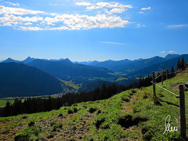 Mit Raini habe ich mal wieder eine tolle MTB Tour gefahren. Wir sind früh am Morgen schon nach Wertach/Allgäu gefahren, wo wir dann bereits um knapp 7 Uhr vom Parkplatz wegfuhren. Wir lieben es beide schon zeitig in der Früh dran zu sein, um einmal dem ganzen Trubel aus dem Weg zugehen und auch um der Hitze des Tages dann auszuweichen. Die Tour umfasste knapp 32 km , 1000 HM und 4:25 Std davon 3:37 reine Fahrzeit. Die Strecke führte von Wertach über die Buronhütte um den Pfeifferberg nach Jungholz und Unterjoch, dann auf die Buchelalpe und über die Alpe Schnitzlertal, wo wir auch unsere ausgiebige Kaffeepause machten wieder zurück nach Wertach an den Parkplatz. Wir hätten noch eine Verlängerung um den Grünten anhängen können, haben aber weil wir doch ein großes Stück auf der Bundesstrasse hätten biken müssen, wegen zu starkem Verkehrsaufkommen dann darauf verzichtet. Es hat ehrlich gesagt auch so gereicht, man solls nicht übertreiben. Es ist eben immer so wie es ist. |
