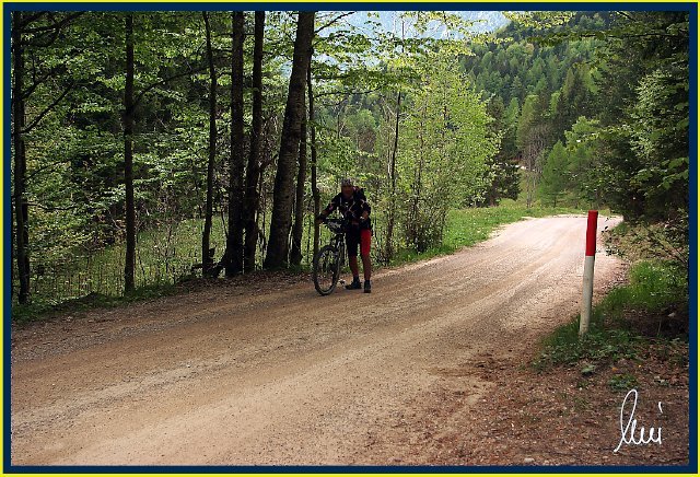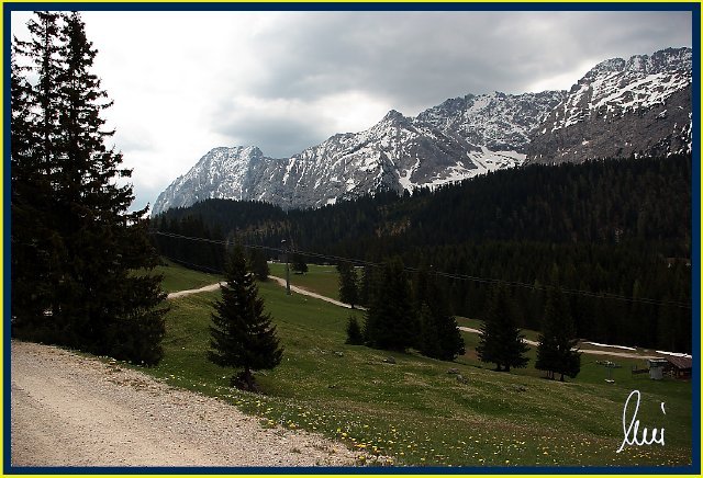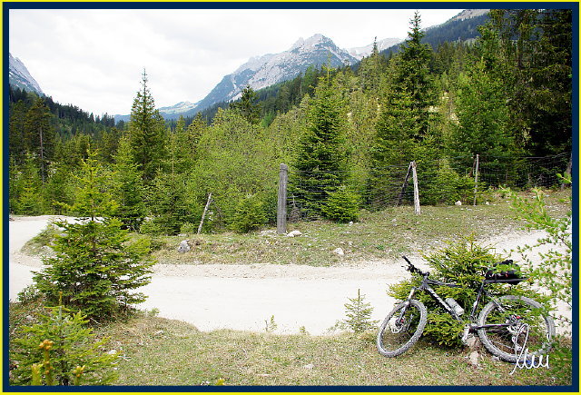 Insgesamt waren es 77 km in 7:13 Std und 2056 Hm. Nachdem das Wetter umschlagen sollte hab ich ganz kurzfristig einen Tag freigemacht, bin mit MTB nach Garmisch gefahren und die Wetterstein-Runde gefahren. Ich wollte Ausrüstung und Kondition testen. Kondition hat gepasst nur ob auch die Kraft schon reicht? Irgendwann bei den 15 % Steigungen ging siemir dann aus. Muss mal über einen Rettungsring auf der Übersetzung hinten nachdenken. Vielleicht lags auch am essen und trinken. Im ganzen Gebiet war es wie ausgestorben. Alle Cafes und Lokale geschlossen. Schnee war überhaupt kein Problem, bin nicht mal in die Nähe gekommen. Tolle Runde, die ich bestimmt wieder mal fahren werde, wenn nur nicht die Heimfahrt wäre. Lauter LKW´s und Rentner die auf der Landstrasse rumschleichen. Aber des muss wohl so sein. |