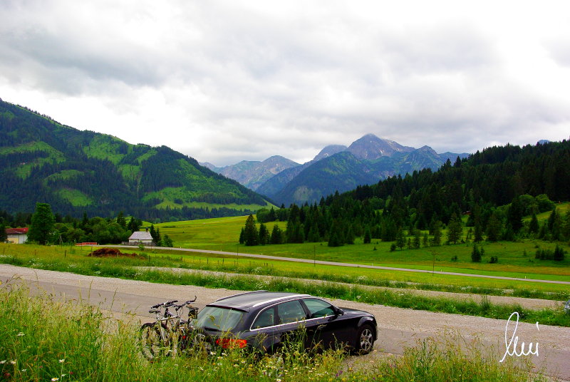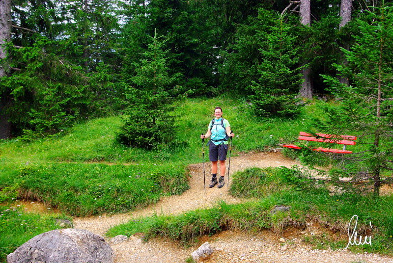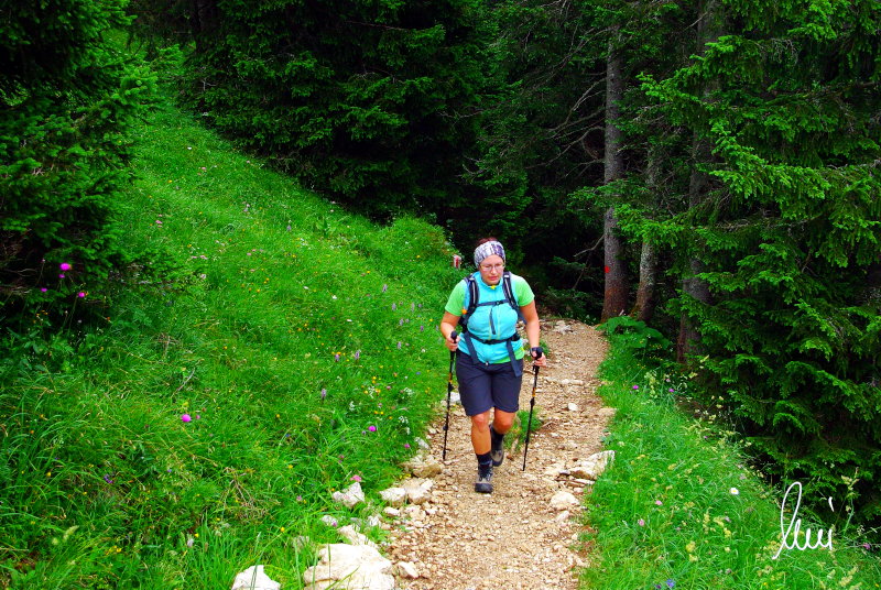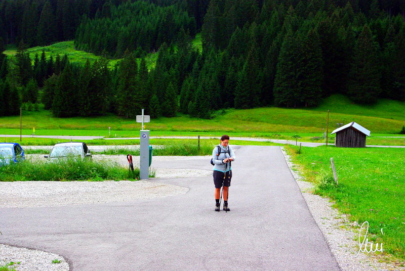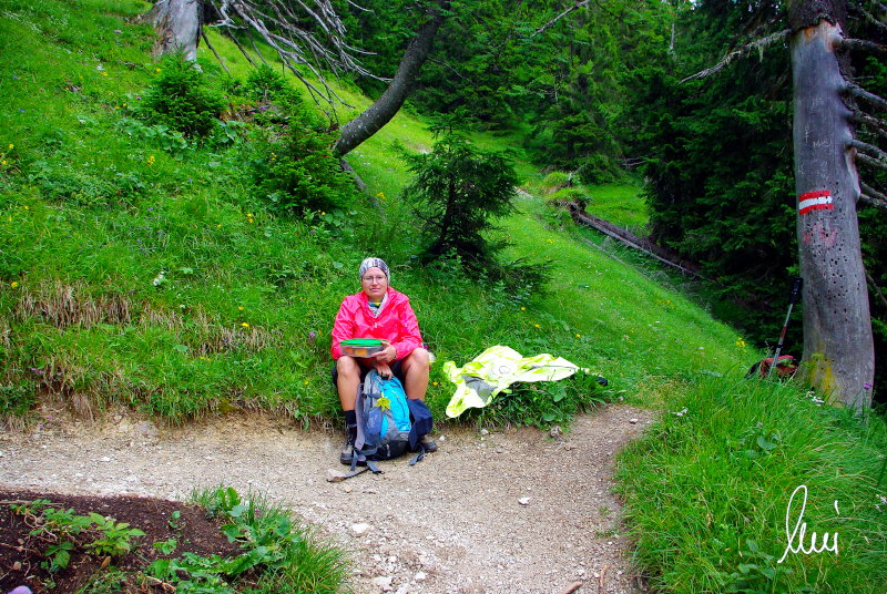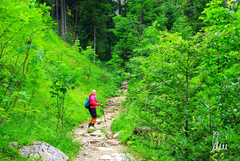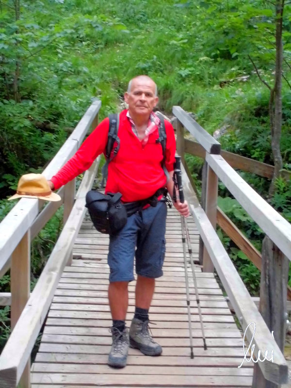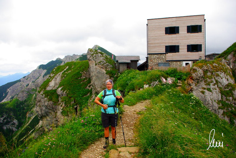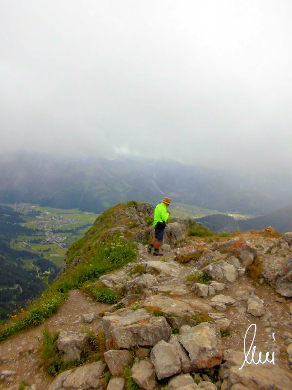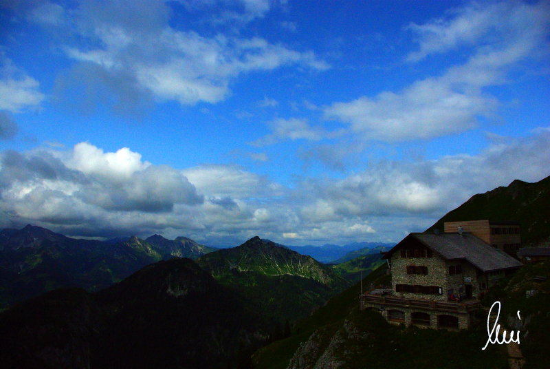 Am 9.7.2015 habe ich mit Verena den Aggenstein bestiegen. Die Tage vorher hatten Temperaturen bis 40 Grad geherrscht, natülich haben wir uns für die Tour etwas kältere Bedingungen gewunschen. Daß es natürlich so kalt werden würde, haben wir nicht gedacht. Schon vom Tal aus haben wir gesehen, daß an diesem Tag die Fernsicht doch ziemlich eingeschränkt sein würde. Daher haben wir schon mal alle Ziele verworfen die über 2000 m lagen. Eigentlich wollten wir entweder den gr. Widderstein oder Geishorn/Rauhorn besteigen. Die Wetterlage hat gar nichts anderes als den Aggenstein zugelassen. Da Verena den auch noch nicht bestiegen hatte, war die Wahl gar nicht so schlecht. Aber schon am Parkplatz sahen wir und gezwungen etwas wärmer anzuziehen, da doch ein recht kräftiger kalter Wind wehte. Der Aufstieg ging recht flott, weil einfach, nur das Wetter machte uns eben Sorgen. An der Hälfte, als wir das erste Mal über den Grad schauten, hat uns der kalte Westwind fast umgeblasen. Jetzt zog ich auch meine Regenjacke an, die ich bis kurz vor Schluss auch nicht mehr los wurde. Verena tapfer immer noch kurzärmelig. An der "Bad Kissinger Hütte" vorbei ging der Aufstieg bis zum Gipfel. Wir hatten beide blau angelaufene Finger, so kalt wars hier oben. Die ersten Leute haben wir am Gipfel getroffen, 2 Franken die in der Hütte übernachtet hatten. Lange konnten wir uns am Gipfel nicht aufhalten, an Brotzzeit machen war gar nicht zu denken. A bissel Guggen und fotografieren und dann wieder runter. Am Rückweg haben wir uns in der Hütte etwas aufgewärmt und Kaffee/Schokolade getrunken. Brotzeit gemacht haben wir erst auf halben Rückweg, als es nicht mehr so furchtbar zog. Allerdings hätte auch noch schlechter kommen können, denn es haben sich immer wieder Regenwolken rumgedrückt. Erst jetzt kamen uns mehr Wanderer entgegen, die das etwas bessere Wetter nutzten. allerdings ging immer noch der kalte Westwind nur etwas aufgeklart hatte es sich. Es hatte aber auch was gutes, so waren wir ziemlich ungestört und relativ früh wieder daheim. Vielleicht ergibt sich die nächsten Tage nochmal die Gelegenheit für eine "schöne" Tour bei dann schönerem Wetter. |