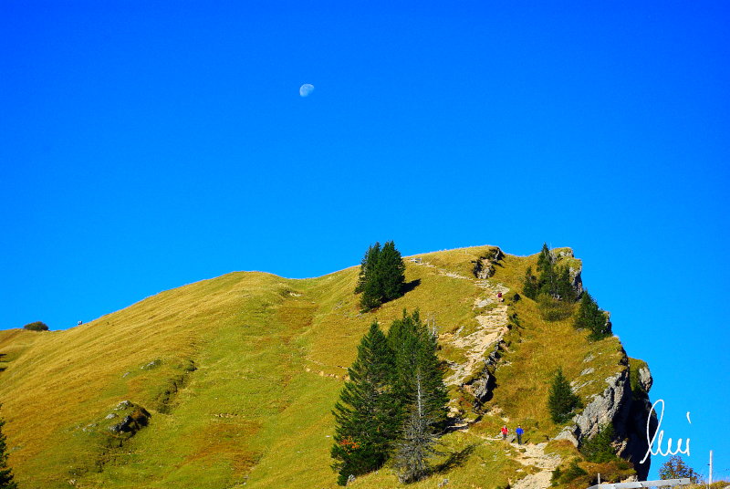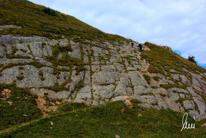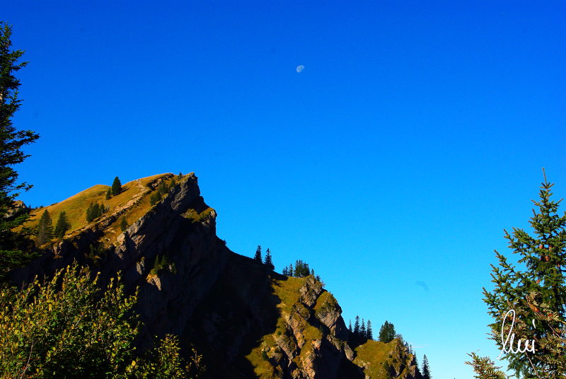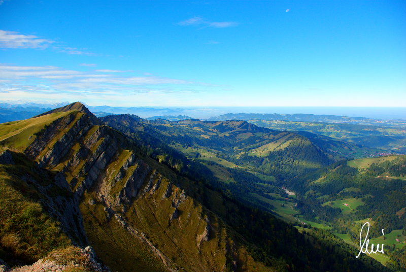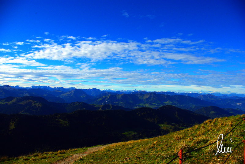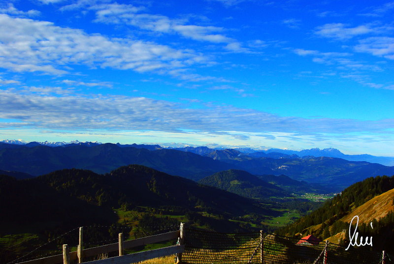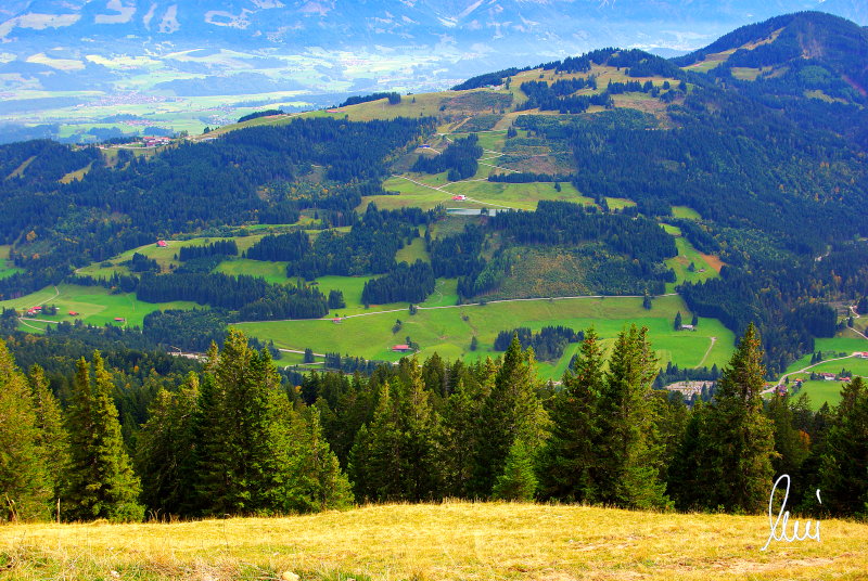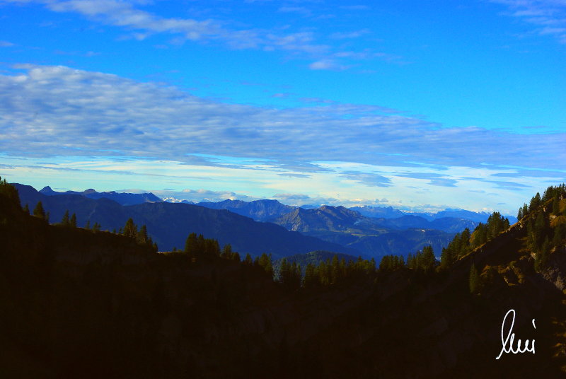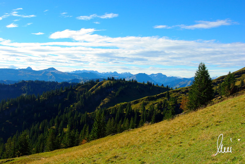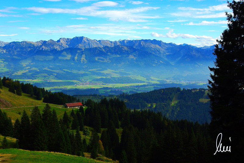Nachdem alle meine Wanderpartner, durch Verletzungen oder Krankheit absagen mussten, hab ich mich allein auf den Weg gemacht. Nachdem in den Hauptalpen letzte Woche über 2000 m teilweise schon Schnee lag, hab ich mich entschlossen, die Nagelfluhüberschreitung anzugehen. Die wollte ich schon lange mal machen, denn man hat von dort oben einen gigantischen Ausblick über den Hautpalpenkamm. Das Wetter war bestens, tolle Fernsicht noch verhältnismäßig warm und vor allem trocken. Bisher habe ich, wenn ich sie von unten gesehen habe, immer gedacht, daß es reine Grasbuckel wären. Das täuscht aber ganz gewaltig, wenn sie auch nicht übermäßig hoch sind, sind doch relativ schwere Passagen drin, die absolute Trittsicherheit veraussetzen und man immer wieder die Hände nehmen muss. Auch eine riesen Leiter ist verbaut, die spektakulär aussieht. Die Tour ist auch relativ lang (15 km) und zieht sich über fast 1500 HM doch 6,5 Stunden hin. Ist also ziemlich anstrengend. Was noch hinzukommt, daß die Tour fast nicht abgebrochen werden kann und es wenig zu trinken gibt. Zwischendrin keine Hütten und keine Bäche zum Wasser auffüllen. Aber die aussicht entschädigt für alles. Das Auto habe ich in Immenstadt am Parkplatz abgestellt und bin dann mit dem ersten Zug und Bus über Oberstaufen und Steibis zur Hochgratbahn gefahren. Was besser war als anders herum. So hatte ich doch am Abend das Auto gleich zur Verfügung. |