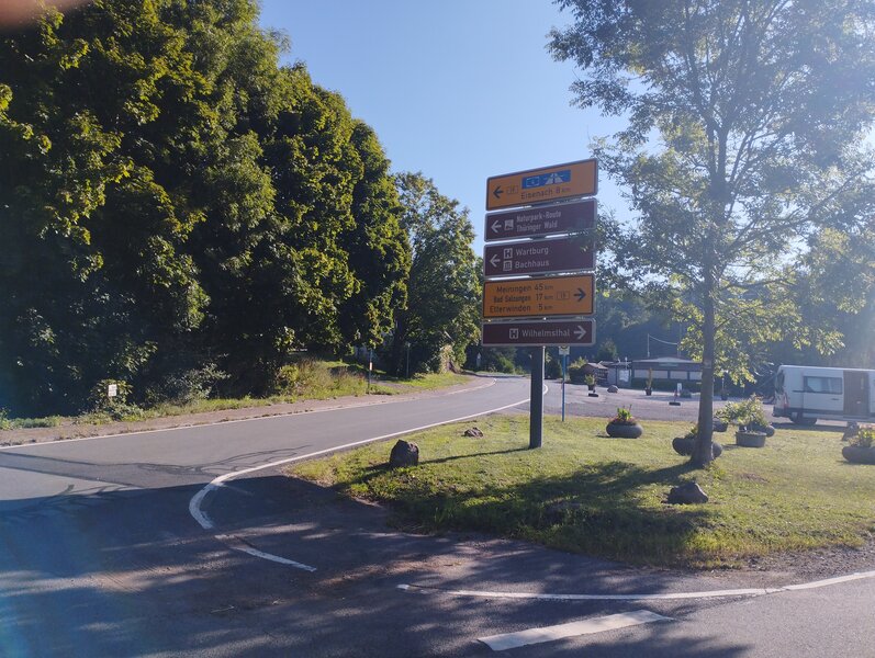 am 17.8.25, Sonntagabend bin ich los , Über A8,A7 und A71 bis nach Meiningen und dann über Land bis kurz vor Eisenach. Hier habe ich gepennt und mir dann am nächsten Tag die Wartburg erkämpft |
